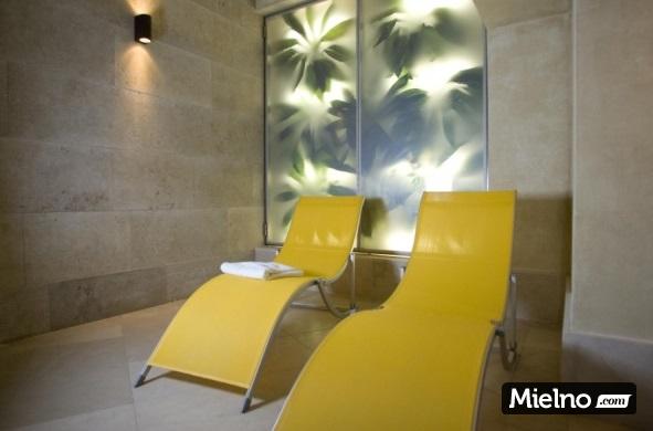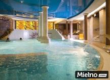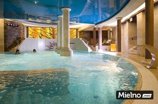 Basen kryty z hydromasażami i kaskadą wodną, pomieszczeniami do relaksu, saunami (suchą i mokrą), jacuzzi, podgrzewanymi kamiennymi łóżkami oraz mini siłownią.